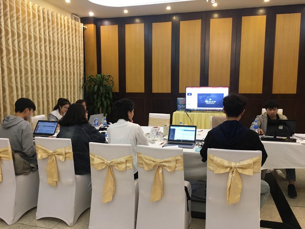 10h00: Chúng mình được chuyển sang một căn phòng riêng của Bộ Y tế và chia thành 4 nhóm nhỏ để bắt đầu triển khai công việc. Nước rửa tay và súc họng luôn sẵn. Mọi người đều rất quan hoài đến chúng mình.